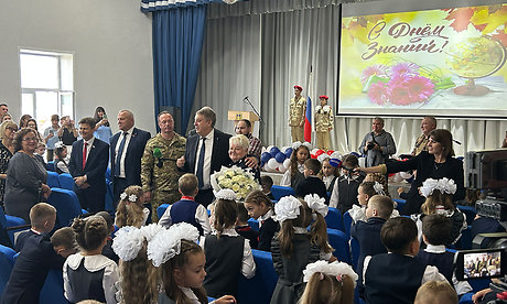 — Сегодня в нашей великой стране большой праздник — День знаний. Все школы, от Камчатки до Калининграда, открыли свои двери. В школе № 13 имени Героя Советского Союза Ильи Борисовича Катунина — двойной праздник, не только 1 сентября, но и открытие, можно сказать, новой школы.