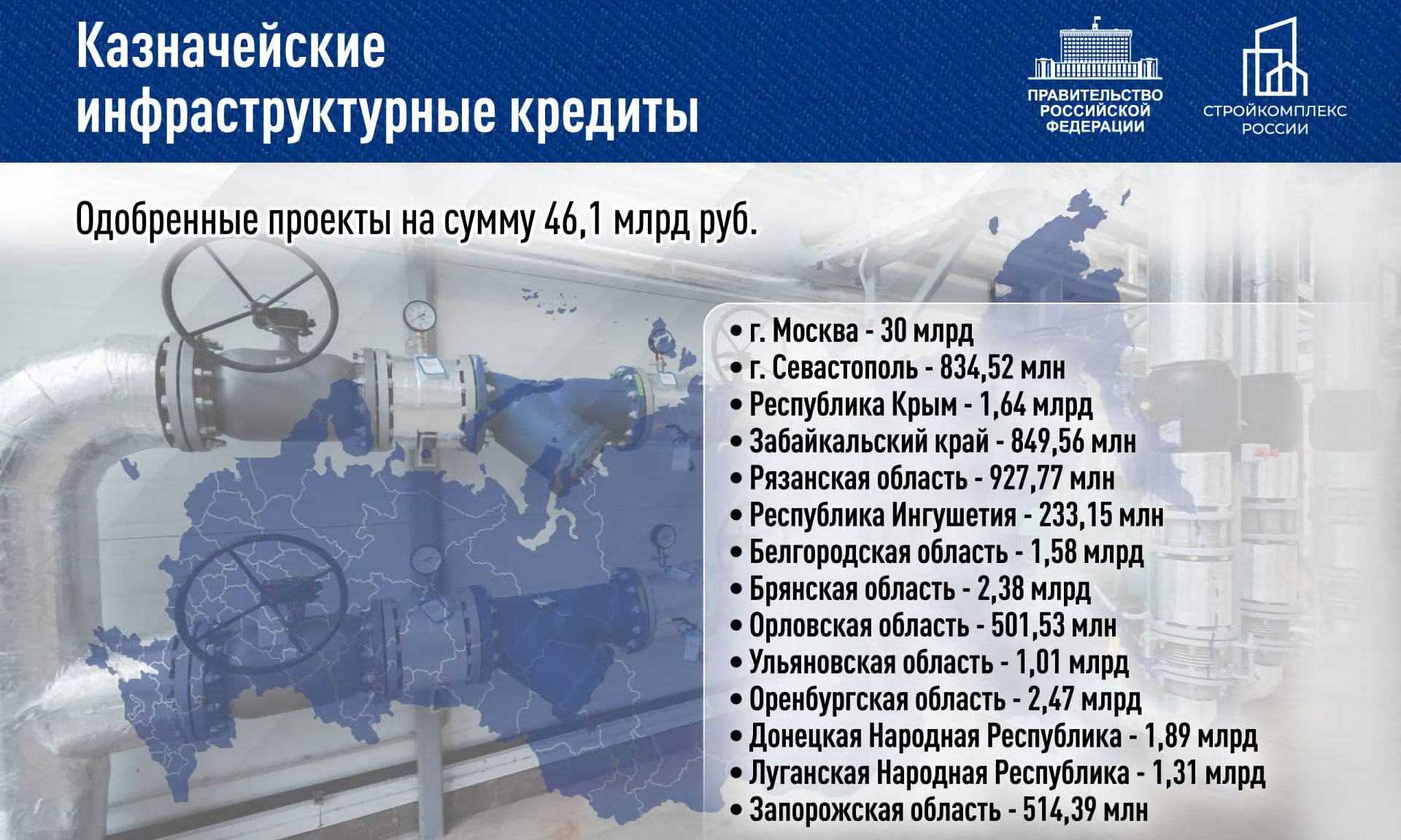 Брянская область направила заявку в рамках лимитов казначейских инфраструктурных кредитов на жилищно-коммунальное хозяйство на сумму 2 млрд 378 млн рублей. Мощность водозаборных сооружений — 90 тысяч м3/сутки. Срок реализации — 2026–2028 годы. По объекту разработана проектно-сметная документация, получено положительное заключение государственной экспертизы.