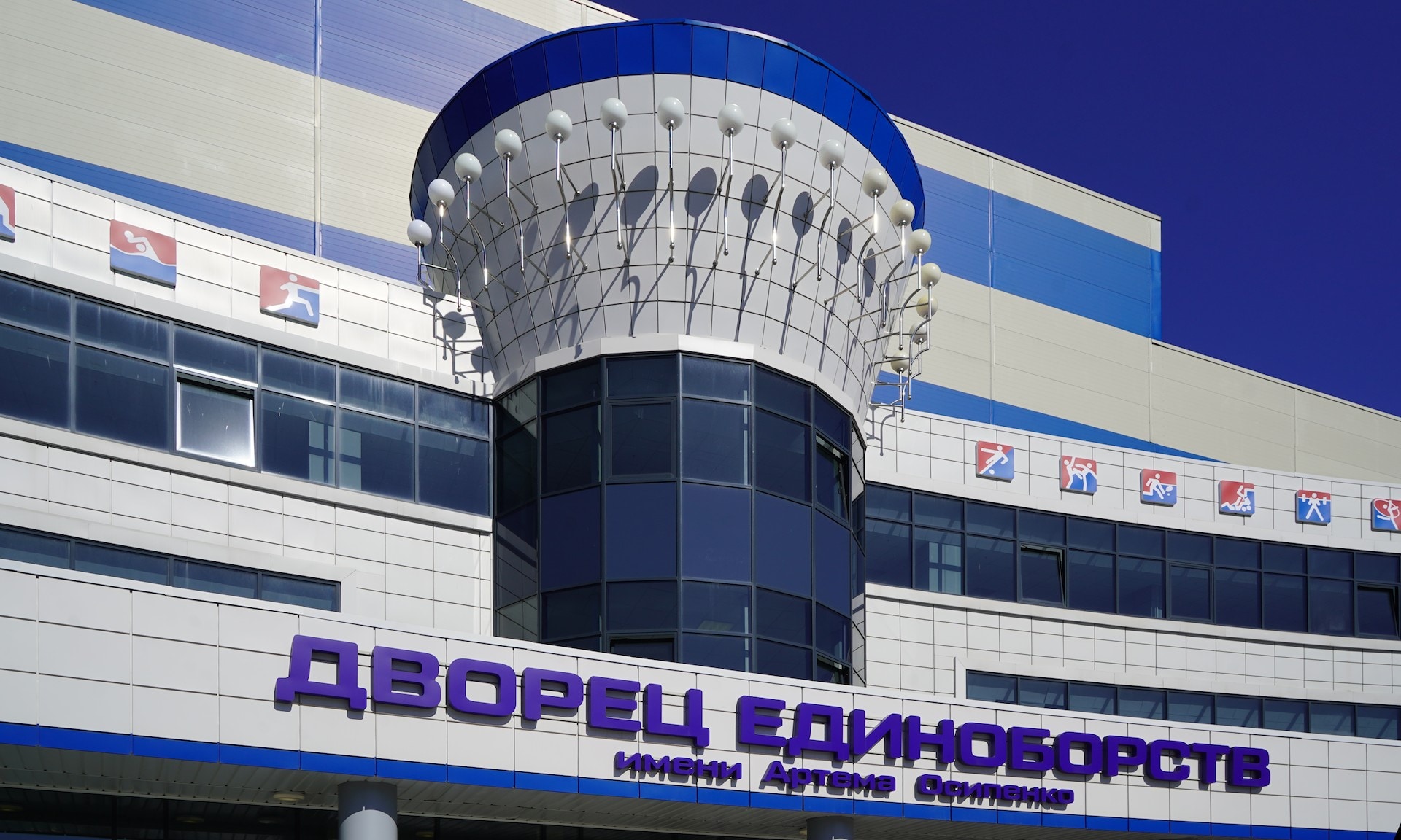 Площадка открыта в лучшем спортивном сооружении России 2023 года, Дворце единоборств имени нашего прославленного спортсмена Артема Ивановича Осипенко, который является гордостью Брянской области, нашим «русским медведем», капитаном сборной страны по самбо.