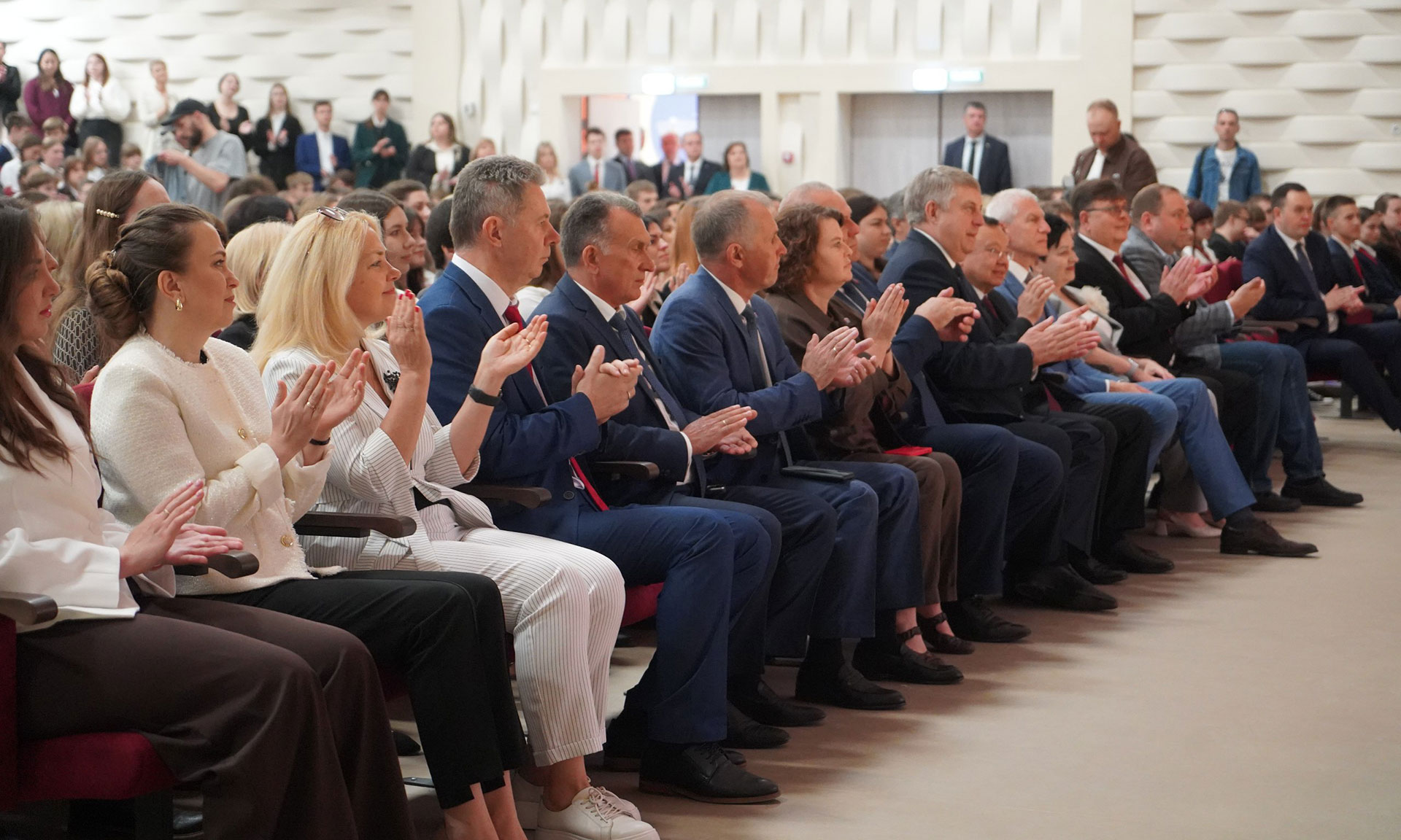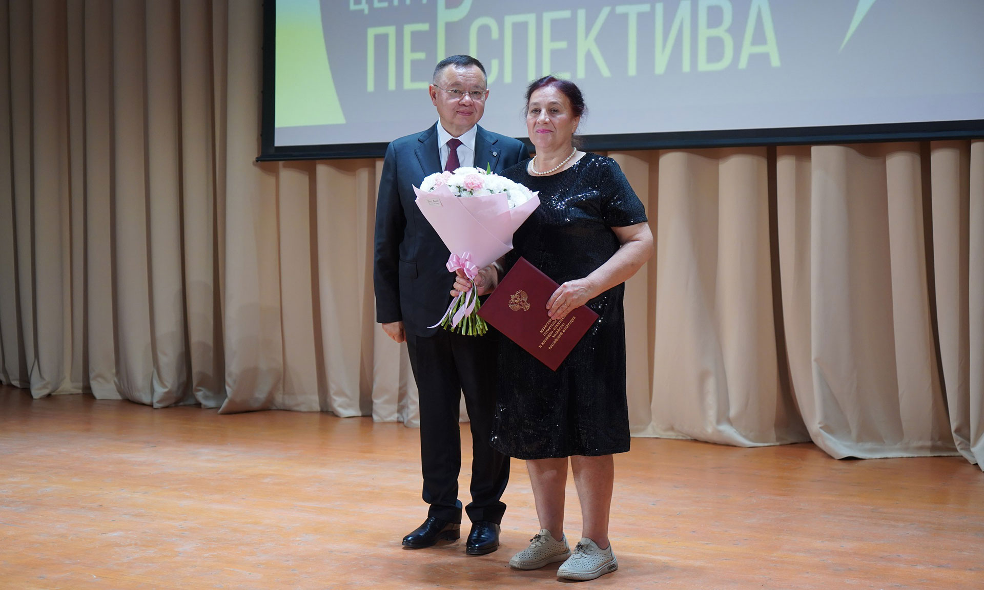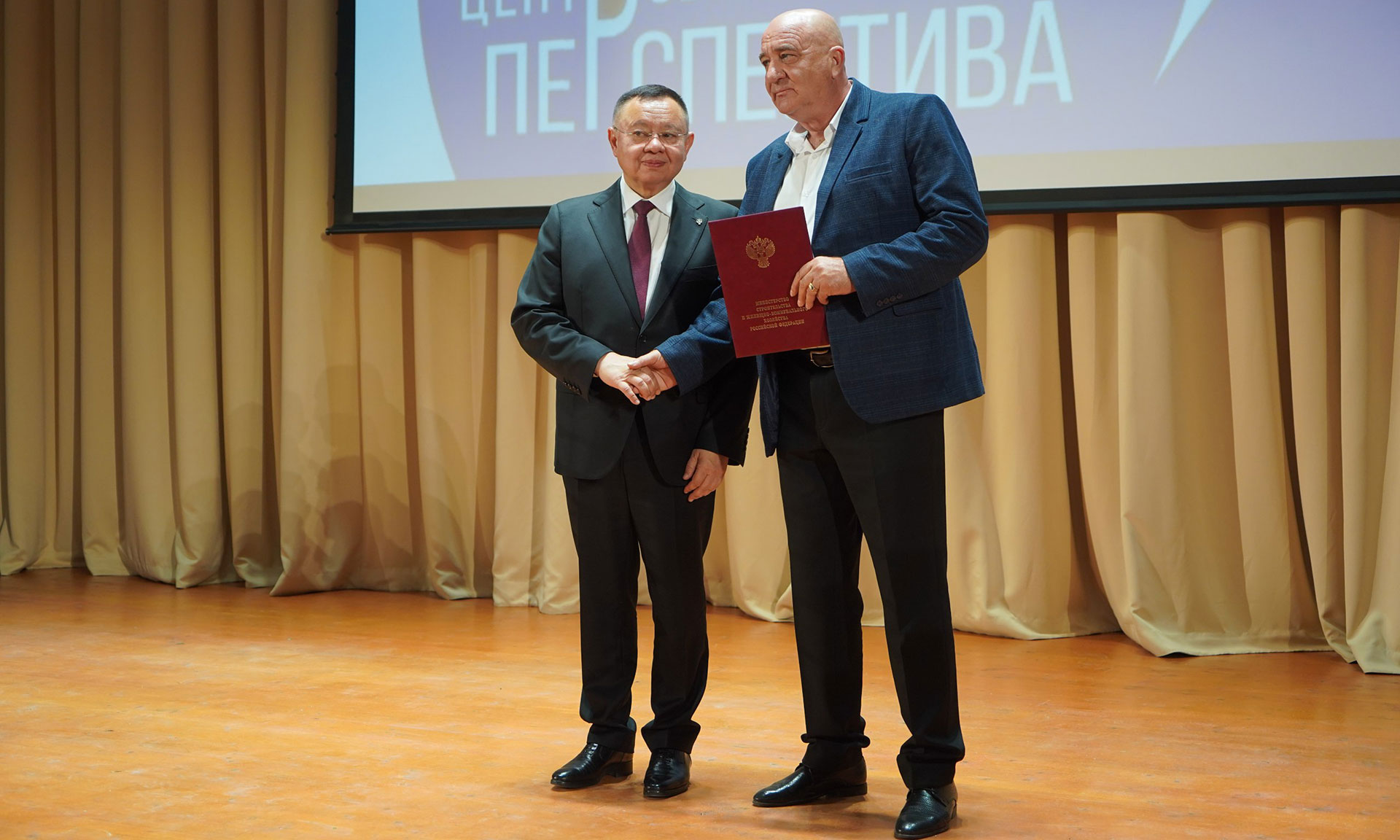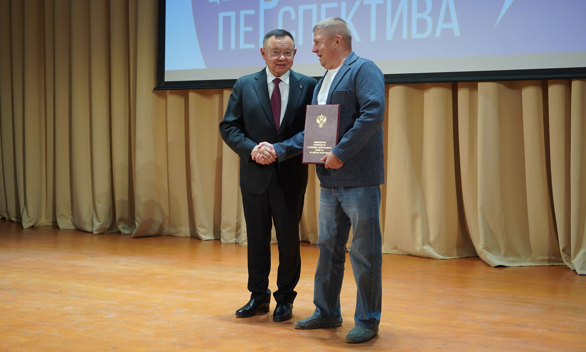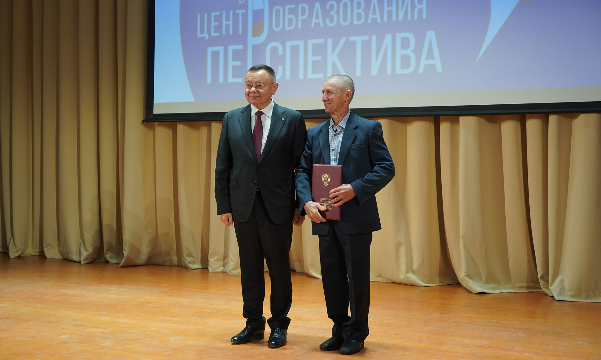 На торжественной церемонии открытия новой школы Министр строительства и ЖКХ РФ наградил работников строительства и жилищно-коммунального комплекса региона ведомственными наградами Минстроя России.