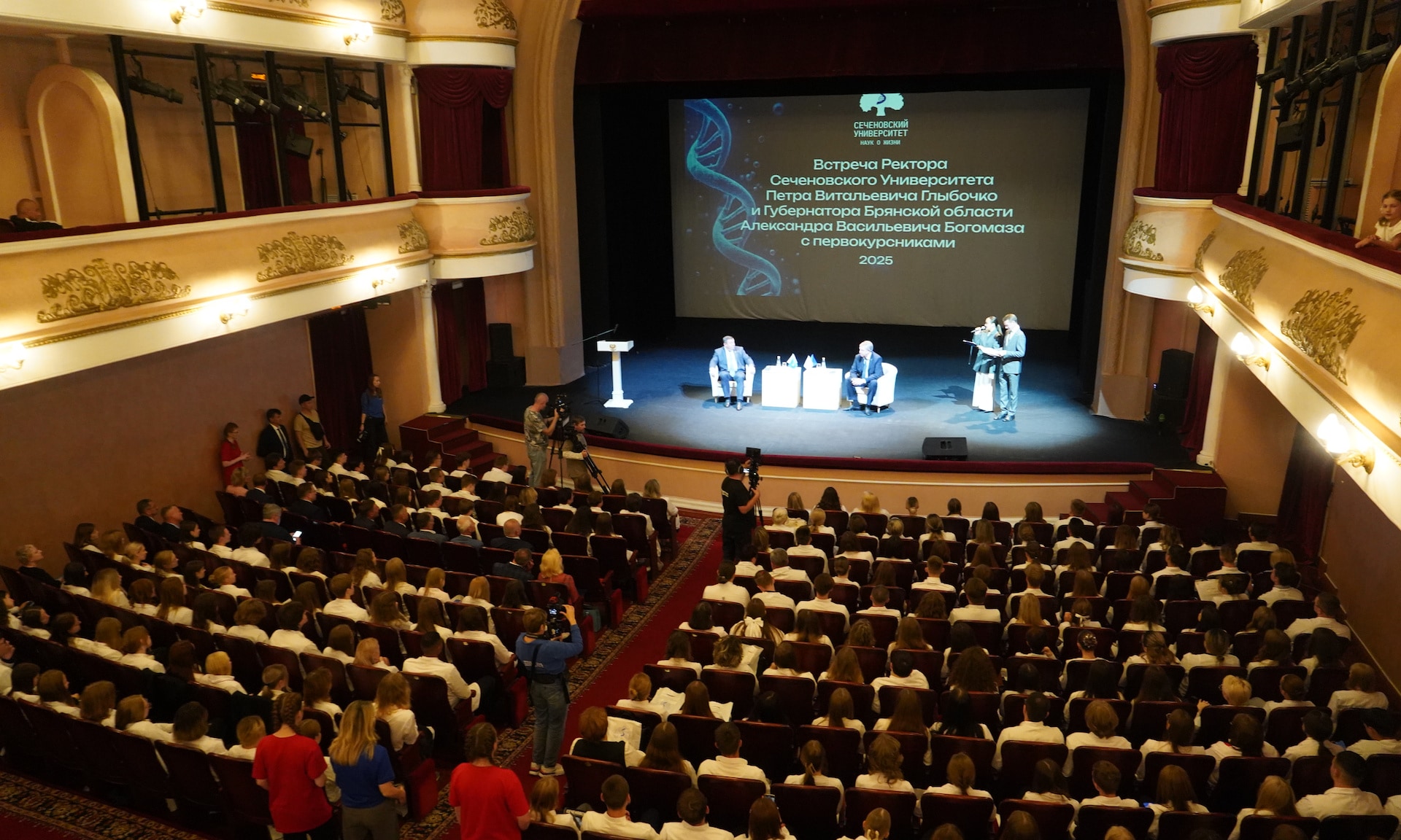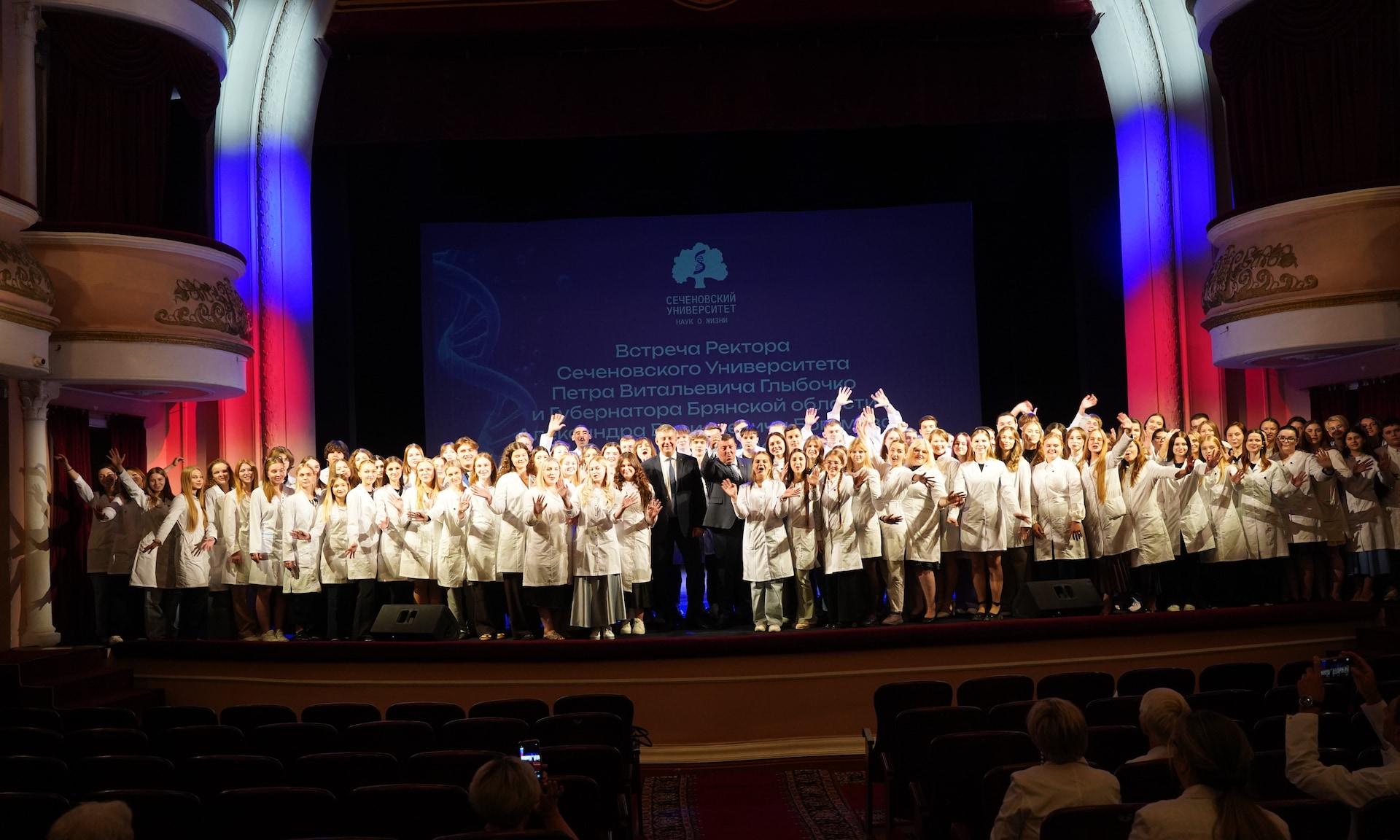 Ректор Сеченовского университета, профессор, академик, наш земляк Петр Глыбочко и Губернатор Брянской области Александр Богомаз встретились со студентами-первокурсниками единственного в стране филиала Первого Московского государственного медицинского университета имени И. М. Сеченова в Брянске.