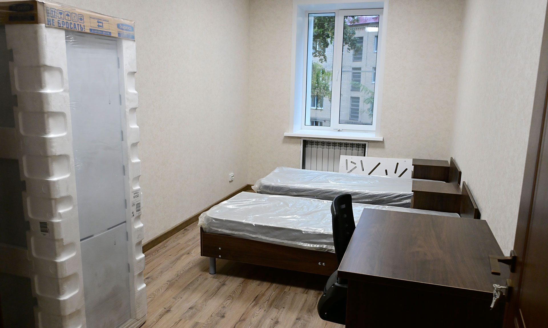 В общежитии уже готовы все комнаты, устанавливается мебель, бытовая техника.