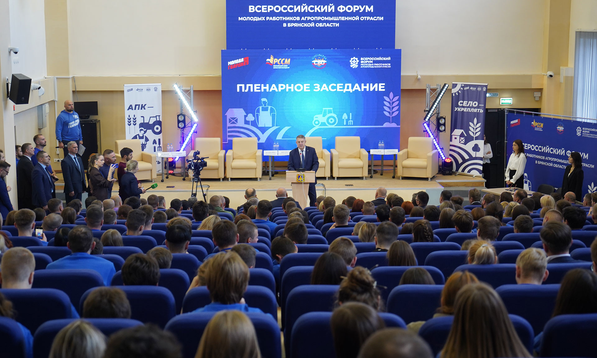 В торжественном открытии форума приняли участие Губернатор Брянской области Александр Богомаз, заместитель председателя Комитета Государственной Думы по аграрным вопросам, лидер Российского союза сельской молодежи Юлия Оглоблина, Герой России, полковник, референт Управления общественных проектов Администрации Президента РФ Алексей Романов, Председатель Всероссийской общественной организации «Молодая гвардия Единой России», член Президиума Генерального Совета партии «Единая Россия» Антон Демидов, председатель Брянской областной Думы Валентин Суббот, сенаторы РФ Василий Попадайло и Вадим Деньгин, депутат Государственной Думы Николай Щеглов, участник СВО, кавалер трех орденов Мужества, участник президентской кадровой программы «Время героев», подполковник Евгений Вылцан.
