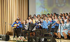 Музыкальное приветствие для гостей в обновленном концертном зале исполнили детский фольклорный ансамбль «Лукошко», учащиеся ДШИ № 10 и хоры.