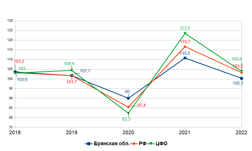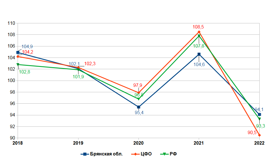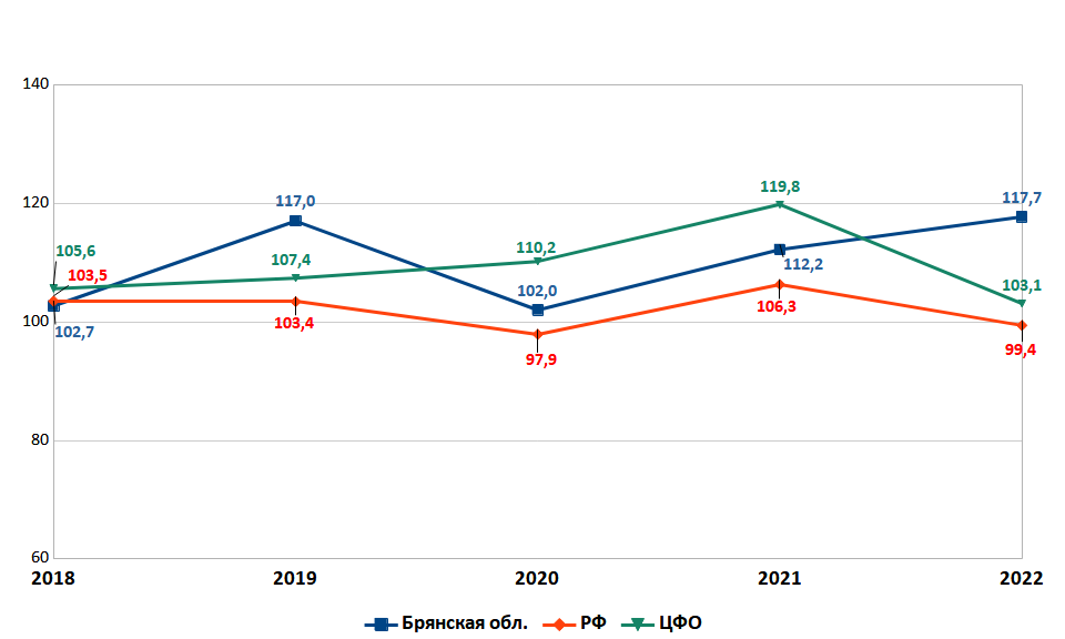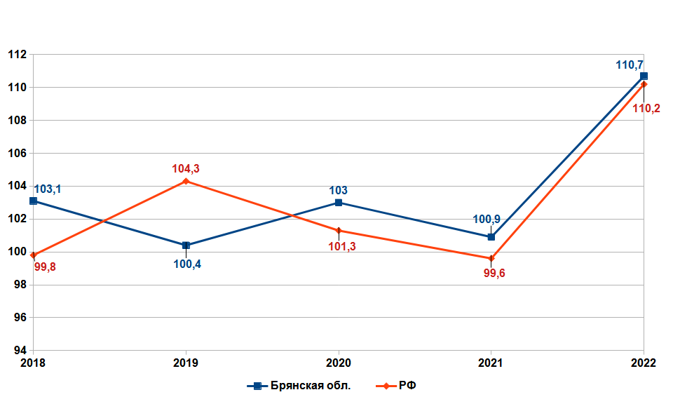 Индекс потребительских цен в среднегодовом исчислении за 2022 год составил 115,0 процентов к 2021 году, за декабрь 2022 года к декабрю 2021 года — 113,8 процента.
