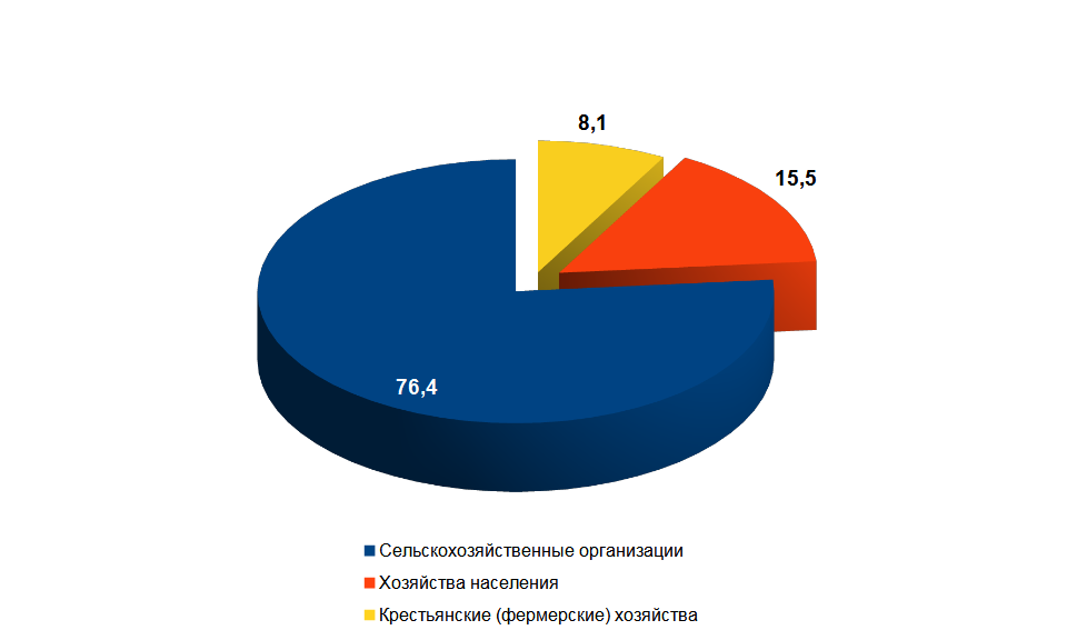 В 2022 году по категориям хозяйств сложилась следующая структура производства: 15,5 процента продукции произведено личными хозяйствами населения; 76,4 процента — сельхозорганизациями и 8,1 процента — крестьянскими (фермерскими) хозяйствами.