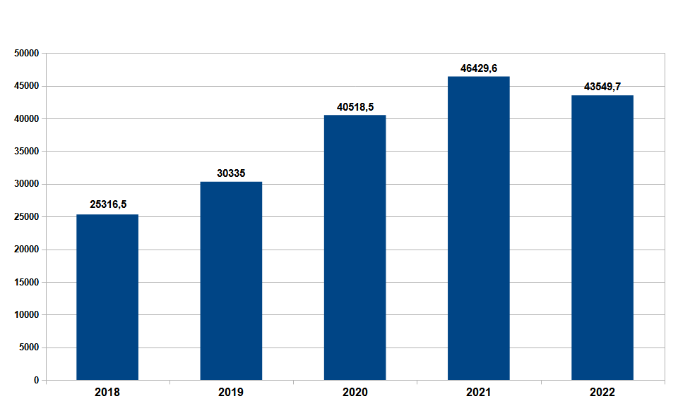 Денежные доходы в расчете на душу населения сложились в сумме 35696,5 рублей, что на 12,9 процента больше, чем в 2021 году, при этом реальные среднедушевые денежные доходы населения составили 98,2 процента к уровню 2021 года.