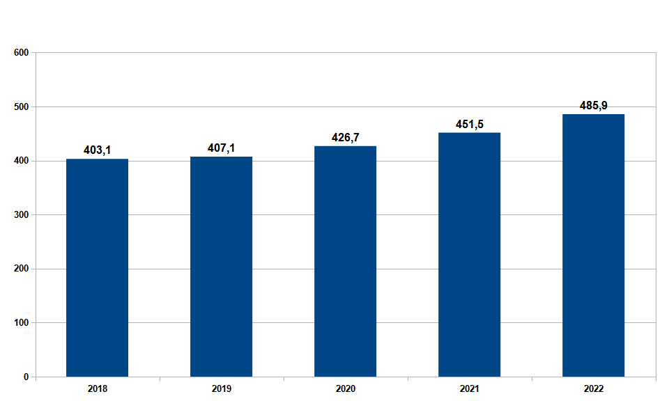 Введено в эксплуатацию 485,9 тыс. кв. метров общей площади жилых домов или 107,6 процента к уровню 2021 года.