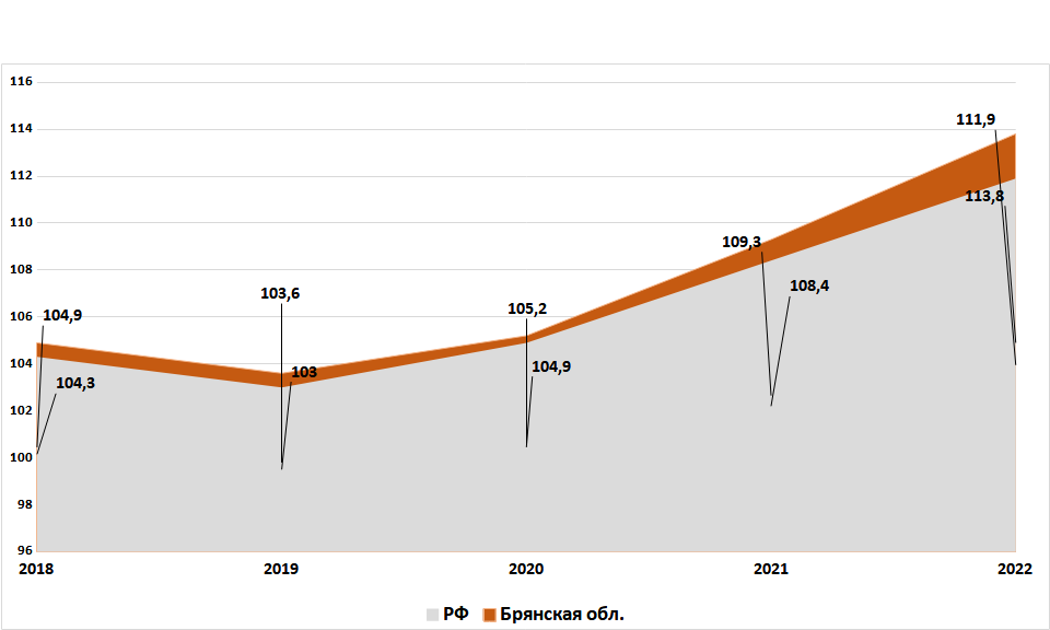 По предварительной оценке численность постоянного населения Брянской области (с учетом итогов Всероссийской переписи населения 2020 года) на 1 января 2023 года составила 1152,6 тыс. человек.