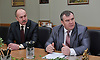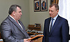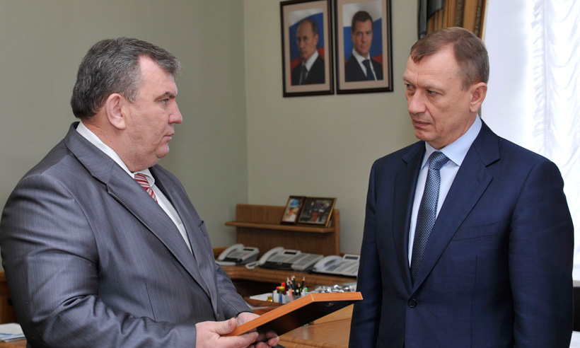 Глава администрации Брасовского района Сергей Лавокин и глава района, председатель районного совета народных депутатов Валерий Иванютин преподнесли в подарок главе региона список с иконы «Всех скорбящих Радость с грошиками».