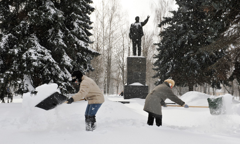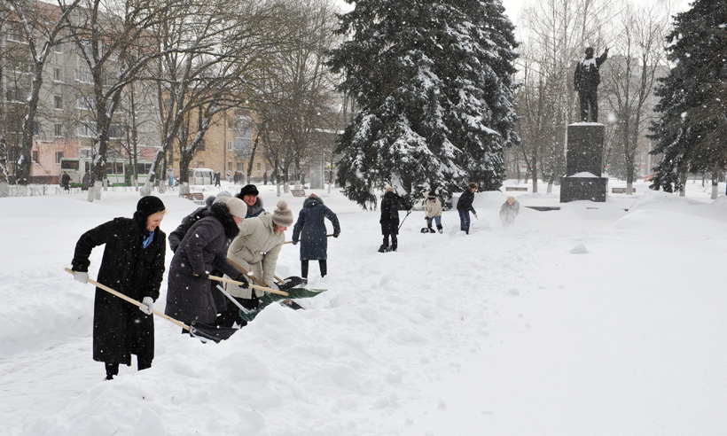 На расчистку улиц областного центра от снега вышли не только снегоуборочная техника, дворники, но и сотрудники областной администрации, других госучреждений, работники предприятий и организаций. Свой рабочий день чиновники начали с лопатами.