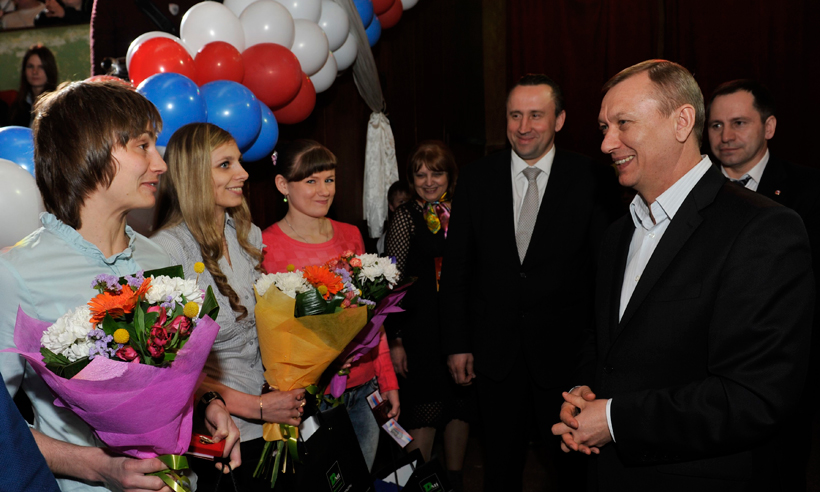 Николай Денин вручил удостоверения, памятные подарки и цветы Юлии Котовой (ей присвоено звание «Заслуженный мастер спорта»), Дмитрию Минакову (он теперь «Мастер спорта международного класса»), Елене Дубининой, ставшей «Мастером спорта международного класса», и Елене Власенко («Мастер спорта»).