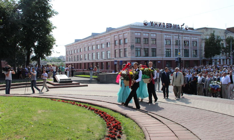 В первый день праздника по традиции руководители области и города в Брянске возложили цветы к памятнику нашему знаменитому земляку.