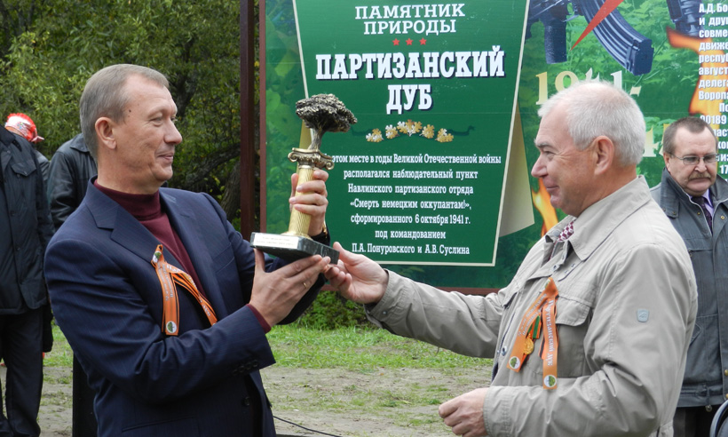 На торжественное мероприятие, которое прошло 20 сентября недалеко от с. Глинное Навлинского района, приехали Губернатор Николай Денин, руководитель Исполнительной дирекции Совета по сохранению природного наследия нации в Совете Федерации, президент Межрегиональной общественной организации содействия сохранения природного наследия регионов «Природное наследие нации» Владимир Зотов и председатель сертификационной комиссии программы, президент Некоммерческого партнерства «Стратегический альянс «Здоровый лес» Сергей Пальчиков, руководители региональных департаментов и управлений, депутаты областной думы, представители партии «Единая Россия».