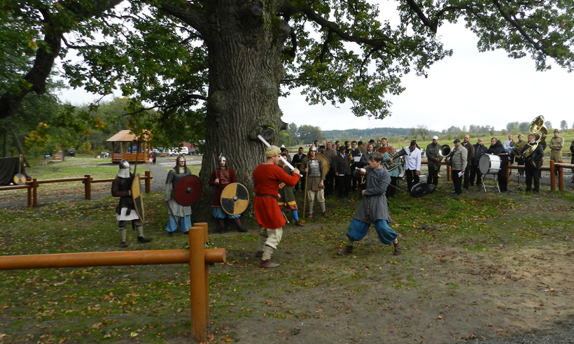 Под огромной кроной дуба, чей возраст превышает 250 лет, была разыграна театрализованная композиция с участием творческих коллективов Навлинского района и г. Брянска.