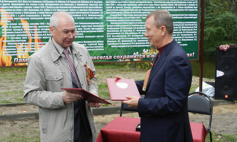 «2013 год для жителей Брянщины особый: это год 70-летия освобождения от немецко-фашистских захватчиков. Праздничные мероприятия проходят по всей земле Брянской. Началось с Карачевского района, дальше будем продвигаться на юго-запад Брянской области, — сказал, обращаясь к собравшимся, Губернатор Николай Денин. — Все эти события имеют огромную объединяющую силу. Великая Победа в 1945 году складывалась из той, которая была 17 сентября 1943 года одержана в Брянске и Бежице, из того, что происходило на земле навлинской. И не было бы такой Победы, уверенной победы, если бы армейцам не помогали партизаны и подпольщики, если бы армейцам не помогало мирное население».