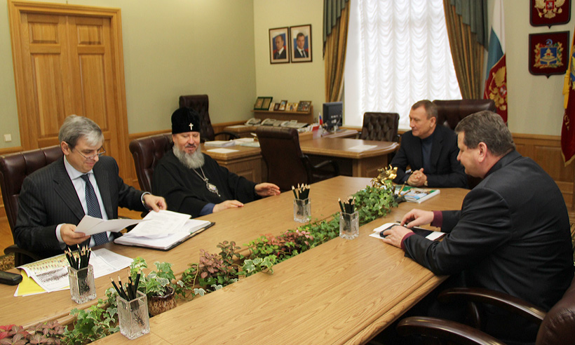 Сегодня Губернатор Николай Денин провел совещание по восстановлению Успенского собора Свенского монастыря.