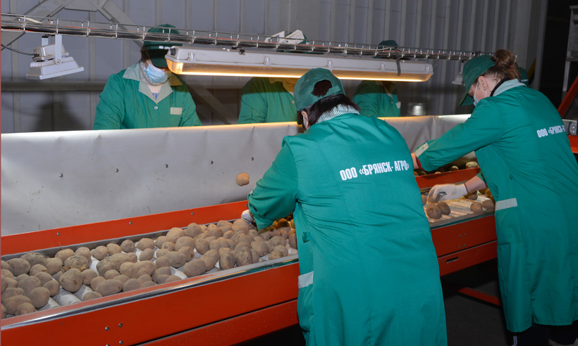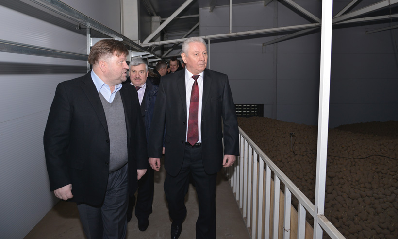 Первым объектом, который посетили наши гости, стало картофелехранилище ООО «Брянск-Агро». Председатель совета директоров компании Вячеслав Никифоров рассказал белорусским представителям о технологии возделывания и сохранения «второго хлеба». В прошлом году предприятие выращивало картофель на территории более 600 га, получив урожай более 300 центнеров с гектара. Вместимость картофелехранилища — более 6 тысяч тонн.