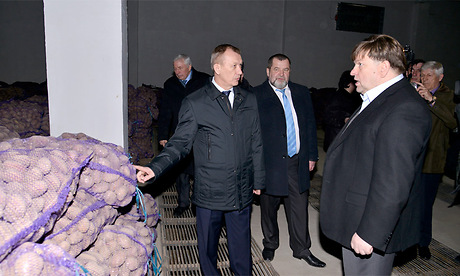 Затем вместе с руководителями районных сельхозуправлений и руководителями муниципальных образований Губернатора осмотрел комплекс по хранению и фасовке картофеля ООО «Брянск-Агро», а также имеющуюся в хозяйстве сельскохозяйственную технику.