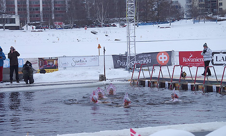 Рованиеми — официальная резиденция Санта Клауса. Соревнования проходили в Центральном парке города на берегу реки Кемийоки, что на границе Северного Полярного Круга. Вода Кемийоки, конечно, ледяная, но атмосфера соревнований была теплой.
