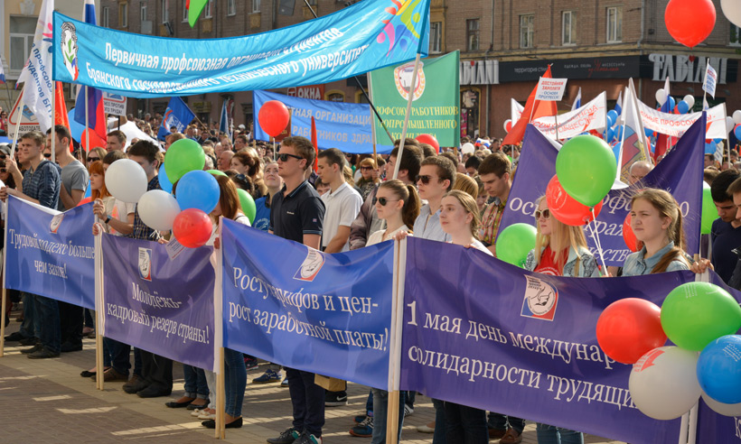 Шествие началось от Театральной площади, где состоялся митинг, организованный Федерацией профсоюзов Брянской области в рамках всероссийской акции «Достойный труд — справедливая зарплата». Участники митинга выступали за соблюдение прав трудящихся, за достойную зарплату и условия труда. В завершение митинга была принята резолюция.