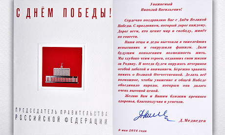Дмитрий Медведев поздравил Николая Денина с Днем Победы.