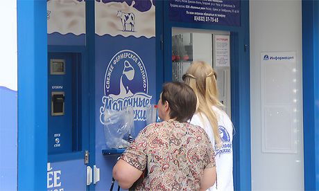 Следуя инструкции на киоске всего за 5 рублей можно купить чистую литровую бутылку, а затем за 40 рублей наполнить её вкусным высококачественным молоком. Можно налить молоко и в свою тару.