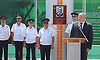 Приветственное слово казакам сказал и главный федеральный инспектор Леонид Соломатин. Он подчеркнул, что сегодня для казаков Брянщины наступил новый этап в становлении и развитии казачьего движения. Он выразил слова благодарности Правительству области, руководству города Стародуба и района за возможность проведения первого строевого смотра казаков на Брянской земле. «Патриотизм не только в форме, он — в сердце каждого русского человека. Тот, кто не помнит историю, порождает войну. Нам есть что защищать, от кого защищать и ради кого защищать. Успехов, добра во славу России», — сказал он в завершении.