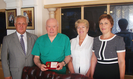 От имени Губернатора Брянской области Федор Костюченко наградил выдающегося кардиохирурга медалью «70 лет освобождения Брянской области от немецко-фашистских захватчиков», а также передал памятные книги о Брянской земле и ее святынях. Встреча прошла в теплой деловой обстановке.