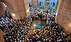 Николай Денин, обращаясь затем к собравшимся у стен главного храма Брянщины отметил объединяющее начало состоявшегося события, поблагодарил всех, кто пожертвовал деньги на возрождение из руин Успенского собора, взорванного в 1930 году.