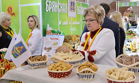 У стенда Брянской области, который является одним из самых крупных на агропромышленной выставке «Золотая осень-2014», аншлаг: продукция наших производителей вызвала огромный интерес у участников. Предприятия Брянской области предлагают высококачественную молочную, мясную, овощную продукцию, известные в России кондитерские изделия, конфеты, квас и многое другое.