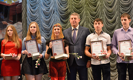 В ДДЮТ имени Ю. А. Гагарина состоялось чествование победителей конкурсов по государственной поддержке талантливой молодежи в рамках приоритетного национального проекта «Образование» 2014 года. В торжественной церемонии награждения приняли участие глава региона Александр Богомаз и председатель Брянской областной Думы Владимир Попков.