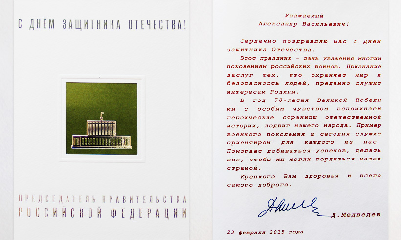 Сердечно поздравляю Вас с Днём защитника Отечества.