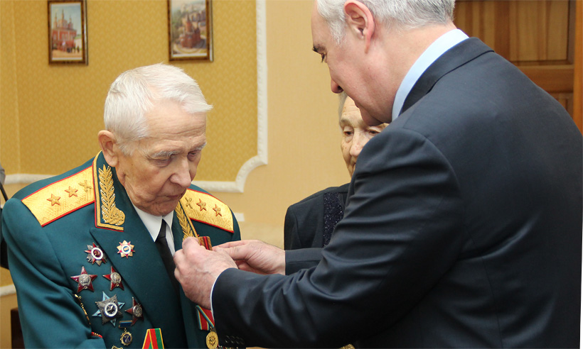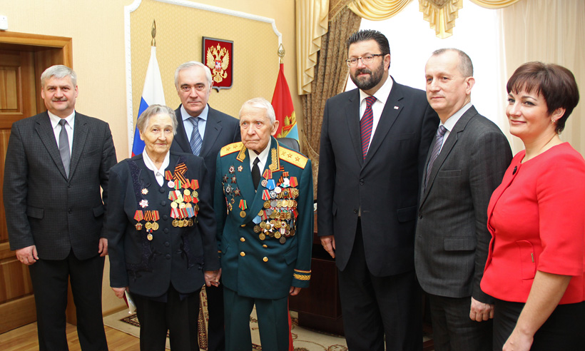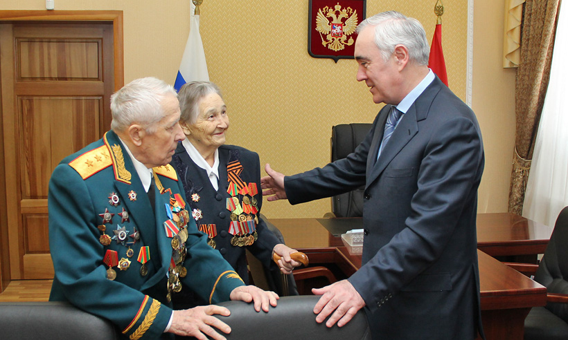 Перед началом приема Мурат Зязиков от имени Президента поздравил ветеранов Великой Отечественной войны супругов Митченковых с приближающимся всенародным праздником Днем Победы. Генерал-лейтенант запаса Дмитрий Васильевич Митченков на протяжении более чем 30 лет возглавлял Брянский областной комитет ветеранов войны и военной службы, он кавалер ордена «Отечественной войны» первой степени, трех орденов «Красной звезды», других орденов и медалей. Анна Петровна прошла вместе с супругом всю войну. От имени Президента Мурат Зязиков вручил ветеранам юбилейные медали «70 лет Победы в Великой Отечественной войне 1941—1945 гг.».