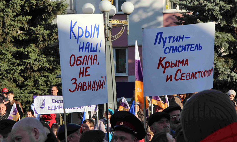 На площади Партизан собрались 7 тысяч наших земляков. Люди пришли, чтобы выразить свою поддержку воле крымчан вернуться в состав Российской Федерации. Ровно год назад на референдуме жители Крыма приняли единодушное решение стать частью огромной и великой страны.