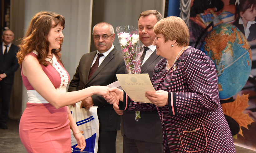 в номинации «За яркий педагогический дебют» — учитель английского языка Гимназии № 1 Брянского района Марина Анатольевна Шелкунова;