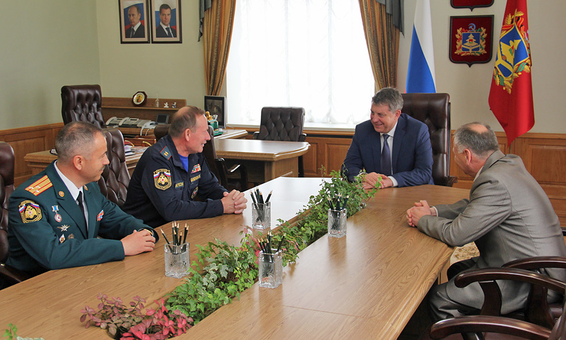Сегодня начальник Центрального регионального центра МЧС России генерал-лейтенант Олег Баженов представил главе Брянской области нового руководителя главного управления МЧС России по Брянской области. Приказом министра Российской Федерации по делам гражданской обороны, чрезвычайным ситуациям и ликвидации последствий стихийных бедствий им назначен полковник Вадим Сергеевич Уваркин.
