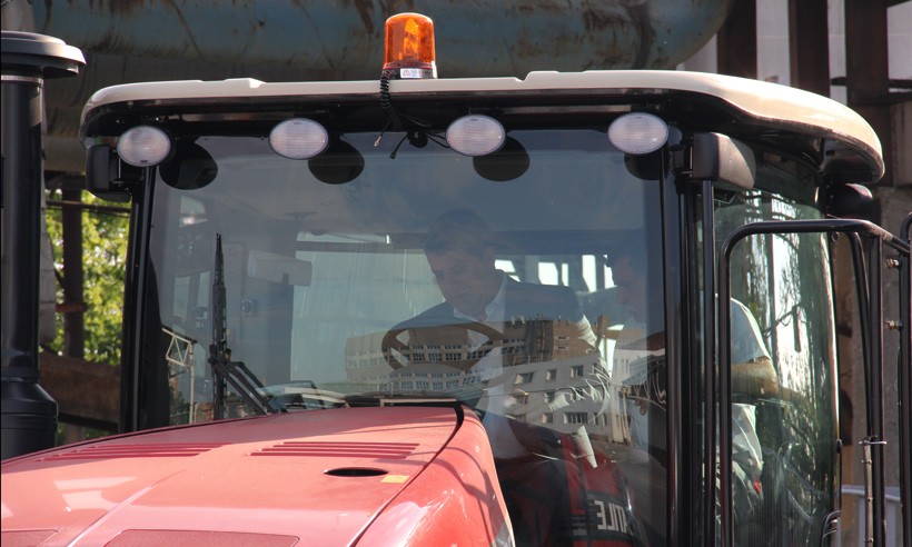 Затем делегация Брянской области побывала на экскурсии на заводе «Ростсельмаш», где Александр Васильевич лично испытал один из производимых на предприятии тракторов, проехав на нем по территории предприятия.