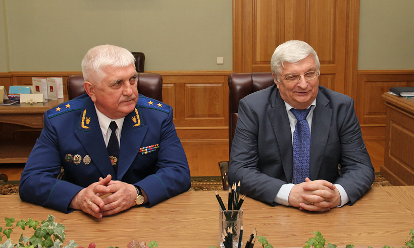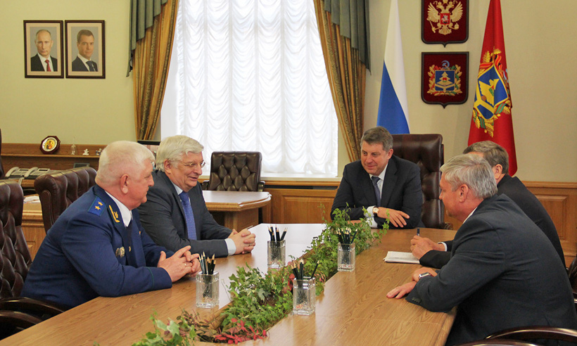 На встрече главы Брянской области Александра Богомаза и заместителя Генерального прокурора Российской Федерации Владимира Малиновского был представлен новый прокурор региона. На встрече также присутствовали председатель Брянской областной Думы Владимир Попков и главный федеральный инспектор по Брянской области Леонид Соломатин.
