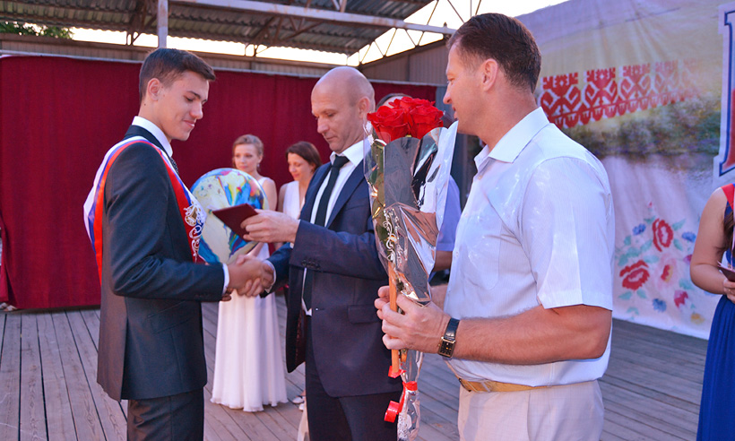 — Сегодня у вас выпускной бал. Это одновременно и яркий праздник, и немного грустное время расставания со школой, которая преподала первые уроки жизни, научила не бояться трудностей. Впереди у вас — долгая и полная неожиданностей дорога к новым вершинам. Школьный аттестат станет вашим главным пропуском в новую насыщенную интересными и важными событиями жизнь. Дальнейший успех во многом зависит от вас, вашей инициативы, уверенности в своих силах, желания идти вперед.
