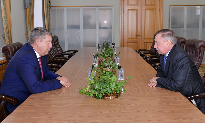 В Брянск с рабочим визитом прибыл полномочный представитель Президента Российской Федерации в Центральном федеральном округе Александр Беглов. Началом визита стала встреча представителя Президента и главы региона Александра Богомаза. Речь на этой встрече шла о социально-экономическом развитии региона, успехах брянской промышленности, подготовке образовательных учреждений к новому учебному году.