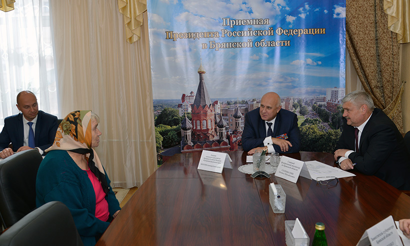 В приеме принимали участие главный федеральный инспектор по Брянской области Леонид Соломатин, заместители Губернатора Юрий Мокренко и Александр Жигунов.