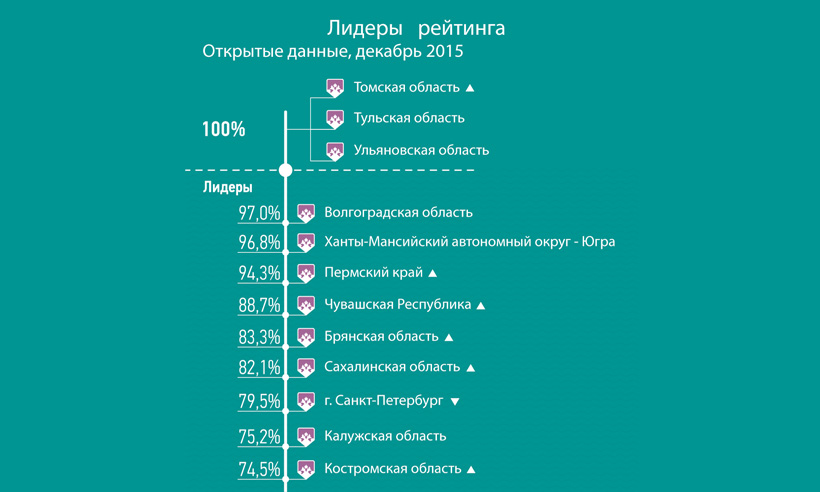 Среди регионов РФ 1 место у Тульской, Томской, Ульяновской областей, 2-е у Волгоградской области и 3-е у Ханты-Мансийского Автономного округа- Югры.