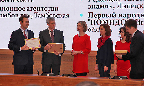 В Москве, в рамках совместного заседания Совета при полномочном представителе Президента Российской Федерации в Центральном федеральном округе и Общественной палаты ЦФО состоялось подведение итогов и торжественное награждение победителей конкурса Общественной палаты Центрального федерального округа среди средств массовой информации на лучшее освещение общественных проектов и гражданских инициатив. К участию в конкурсе были представлены 282 проекта из 86 средств массовой информации регионов ЦФО. Награды были присуждены в пяти номинациях: «Печатное СМИ», «ТВ», «Интернет-СМИ», «Большой проект маленького СМИ» и «Великая Победа».
