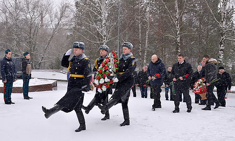 В завершение митинга собравшиеся почтили память погибших бойцов минутой молчания и возложили цветы к подножию мемориала.