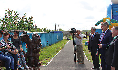 В преддверии Дня защиты детей Губернатор вместе с другими гостями в сопровождении главы администрации Комаричского района Виктора Кузина побывал в городском парке аттракционов, где состоялось красочное театрализованное мероприятие. Городской парк был создан на средства муниципалитета, и сегодня является современной площадкой для активного детского отдыха.
