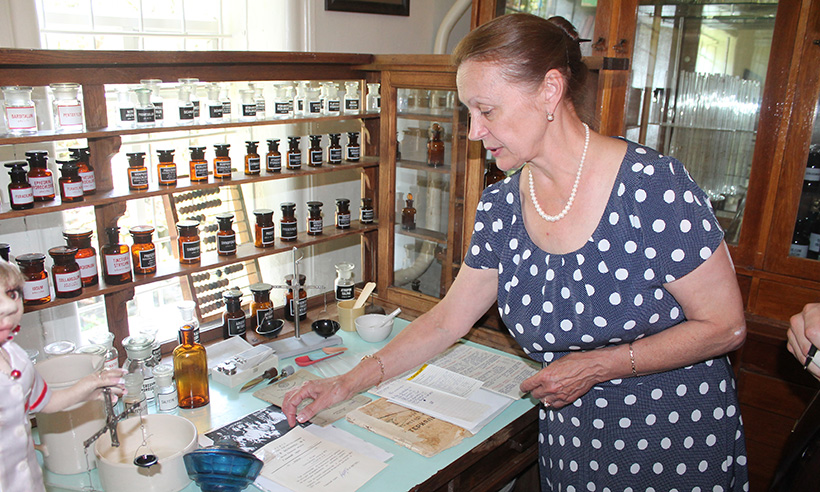 Аптека-музей разделена на две половины, где в одной по-прежнему будут отпускать готовые лекарственные средства, а в другой — проводить экскурсии. Первую экскурсию провела Вера Толочко, рассказавшая о том, как собирали экспонаты, которых и сейчас уже нигде не увидишь, а через несколько лет они станут настоящими музейными редкостями. К примеру, среди выставочного оборудования есть дистиллятор военного образца, который топится углем, порошковые дозаторы для порошков и жидкостей, мешалки для растворов и мазей, ступки, аптечная посуда, весы. Кроме того, в аптеке-музее имеется и старинная мебель, еще больше подчеркивающая ценность представленных музейных экспонатов.