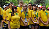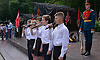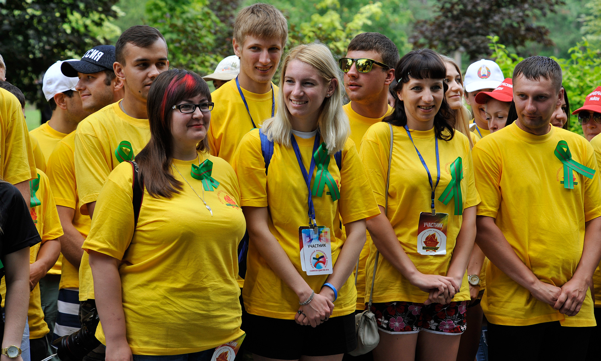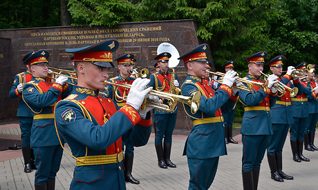 На Партизанскую поляну внесли копию Знамени Победы и флаг России. Затем — 14 копий знамен партизанских отрядов и соединений регионов России, Белоруссии и Украины.