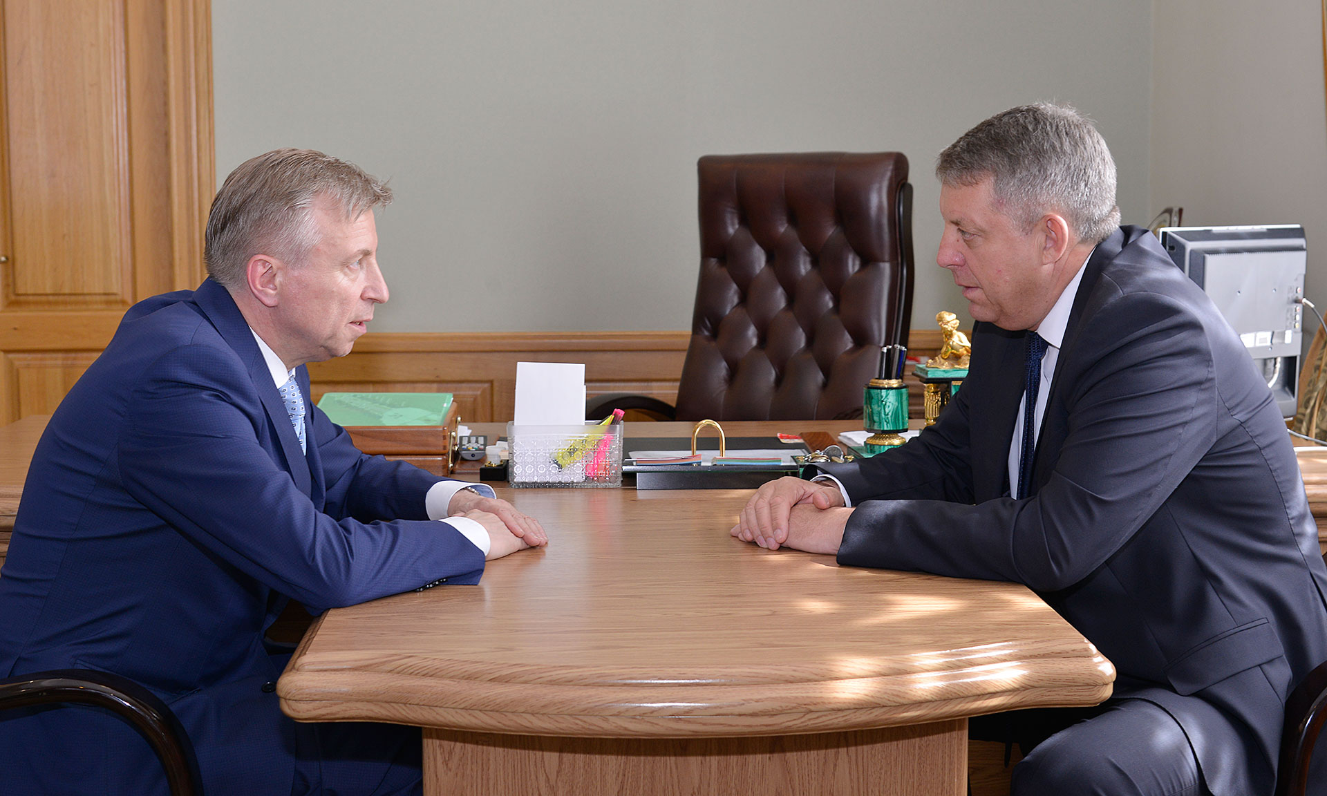 Перед началом мероприятия состоялась рабочая встреча Губернатора Брянской области Александра Богомаза с заместителем Министра экономического развития Российской Федерации Павлом Королевым.