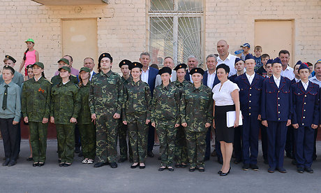 На площадке перед школой специально для гостей учебного заведения состоялось выступление профессиональных спортсменов и юных авиамоделистов.